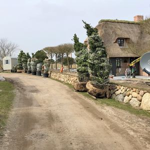 Der Garten fügt sich in das klassische Bild der Sylter Siedlungen ein und bildet doch eine ganz eigene Einheit für sich. Mit Reetdachhaus, Friesenmauer und Schwimmbecken auf dem hinteren Grundstücksbereich entstand ein nordfriesisches Urlaubs- und Wochenendparadies mit edler Ausstattung.
